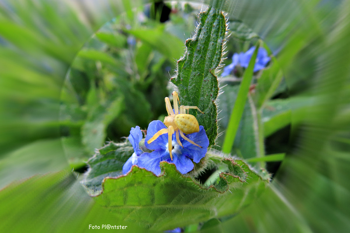 op een blauw bloemetje.